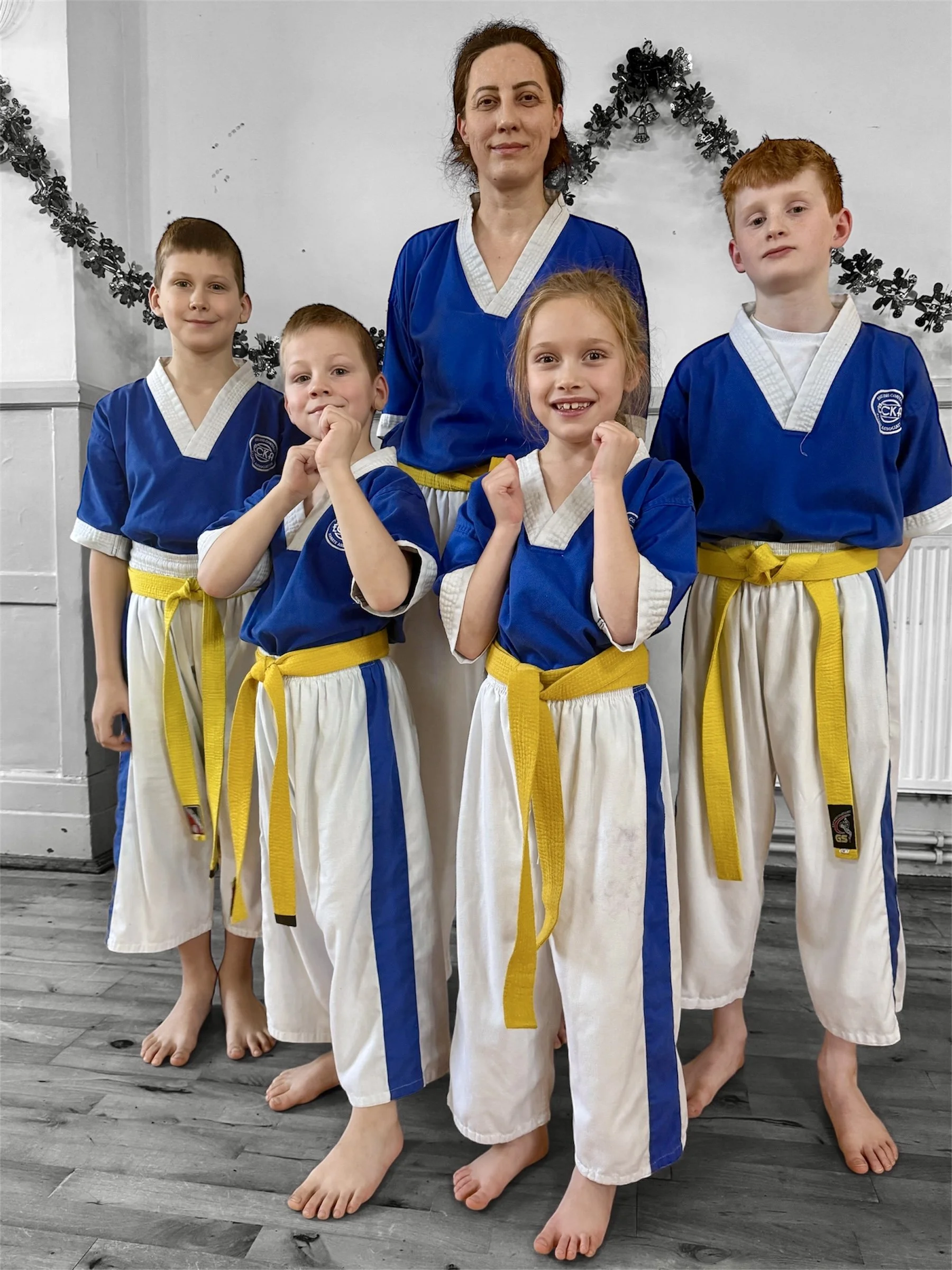 Yellow belts for Alexander, Allix, Brian, Lorcan and Lukas
